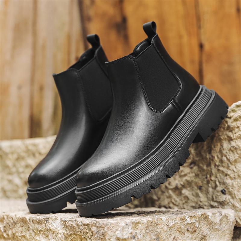 Мужские зимние ботинки челси на платформе, трендовые короткие ботинки с внутренней высотой, ботинки Мартина, мужские рабочие ботинки 56731-J