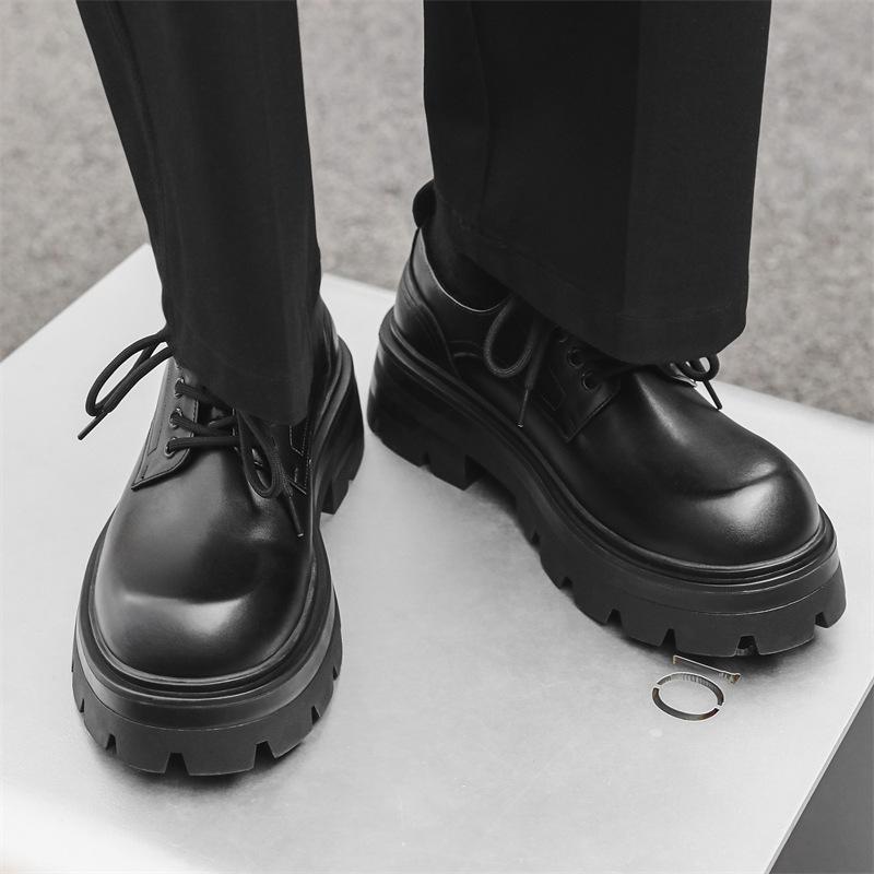 Повседневные кожаные туфли на толстой подошве с низким верхом и круглым носком, деловые туфли дерби, осень-зима, новые кожаные туфли, увеличивающие рост, с низким верхом 5051-J