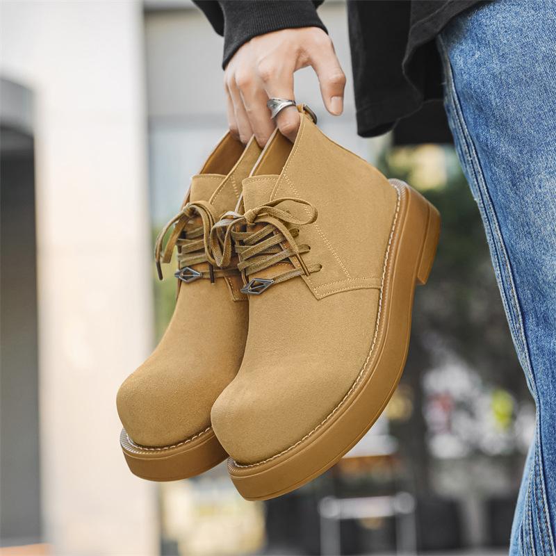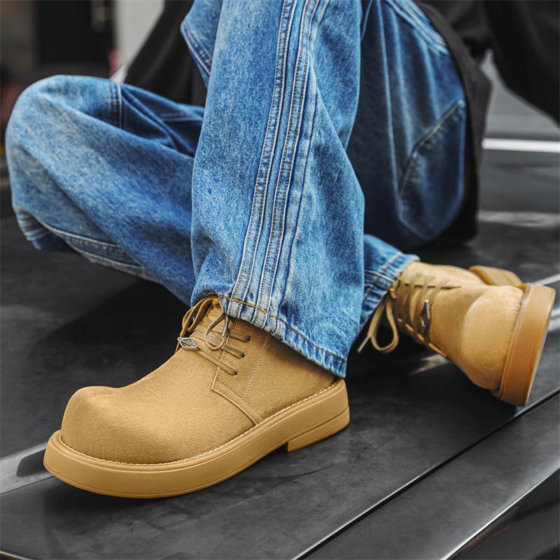 Мужские зимние бархатные ботинки мартин на высокой платформе, мужские ботинки для улицы, ботинки для инструментов на толстой подошве, мужские ботинки цвета ревеня 4728-J
