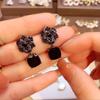 Взрывные серьги с черной камелией и цирконом в стиле Douyin, женские высококлассные серьги с зеленым кристаллом, темпераментные, в стиле легкой роскоши — купить товар онлайн с бесплатной доставкой по всему миру!