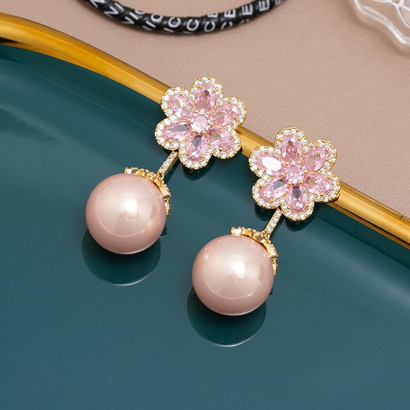 Серьги из серебра S925 с иглами, инкрустированные микроцирконами, в виде цветка сакуры и жемчуга, роскошные, европейского и американского стиля, оптовая продажа от фабрики — купить товар онлайн с бесплатной доставкой по всему миру!