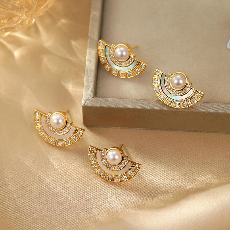 Серьги из натуральных ракушек Женские Ретро Жемчуг Средневековые Винтажные Серьги-гвоздики Полукруглые Преувеличенная Личность Высококлассные Серьги