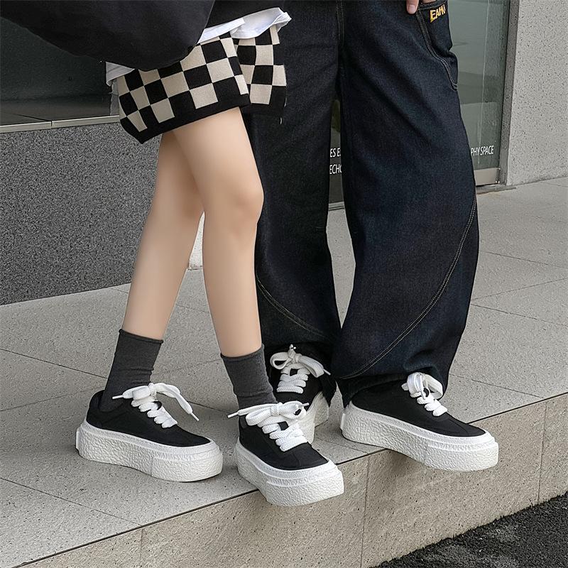 Белые туфли на платформе для пар, новые универсальные туфли-бисквиты на шнуровке, увеличивающая высоту подошва-маффин, повседневная обувь 50447-W