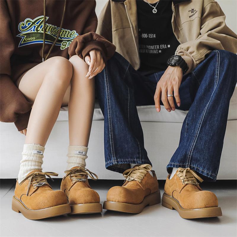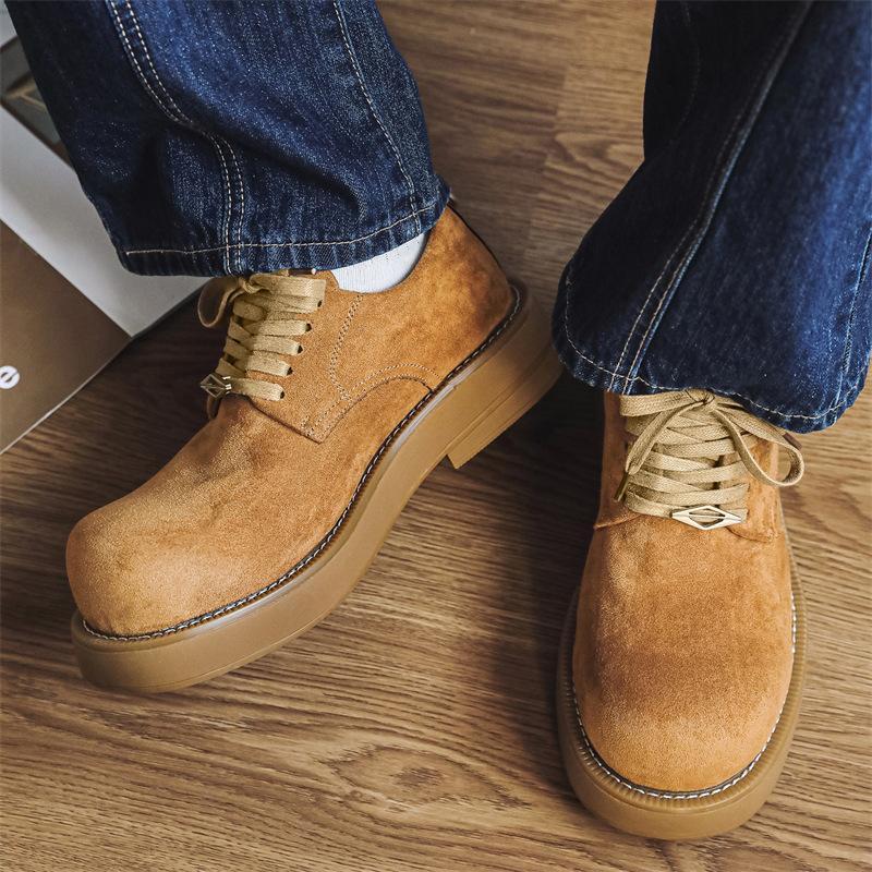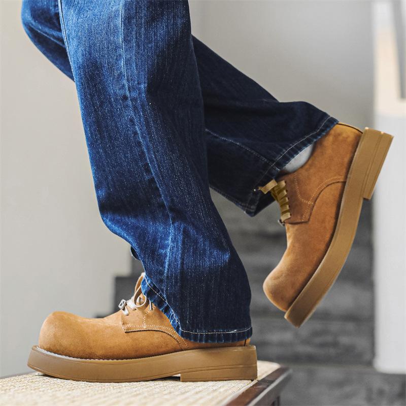 Туфли дерби мужские весна-осень 2024 года новые туфли с большим носком на толстой подошве, модные низкие туфли с круглым носком из кожи 1088-J