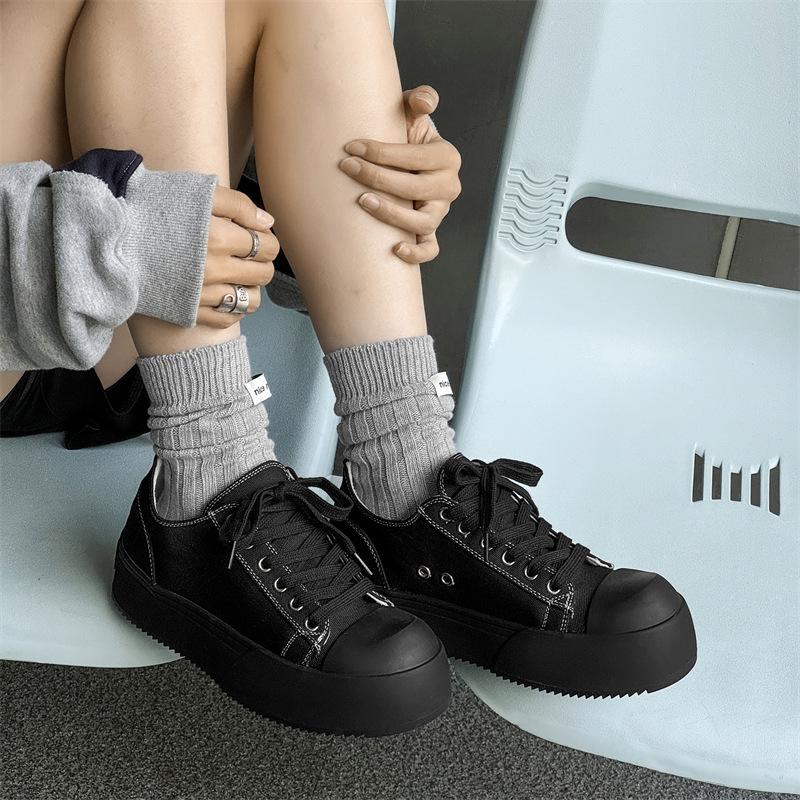 Мужские и женские парусиновые туфли в студенческом стиле, модные туфли для серфинга, британские повседневные туфли с большой головой, туфли-дерби на платформе с увеличенным голенищем 14464-J
