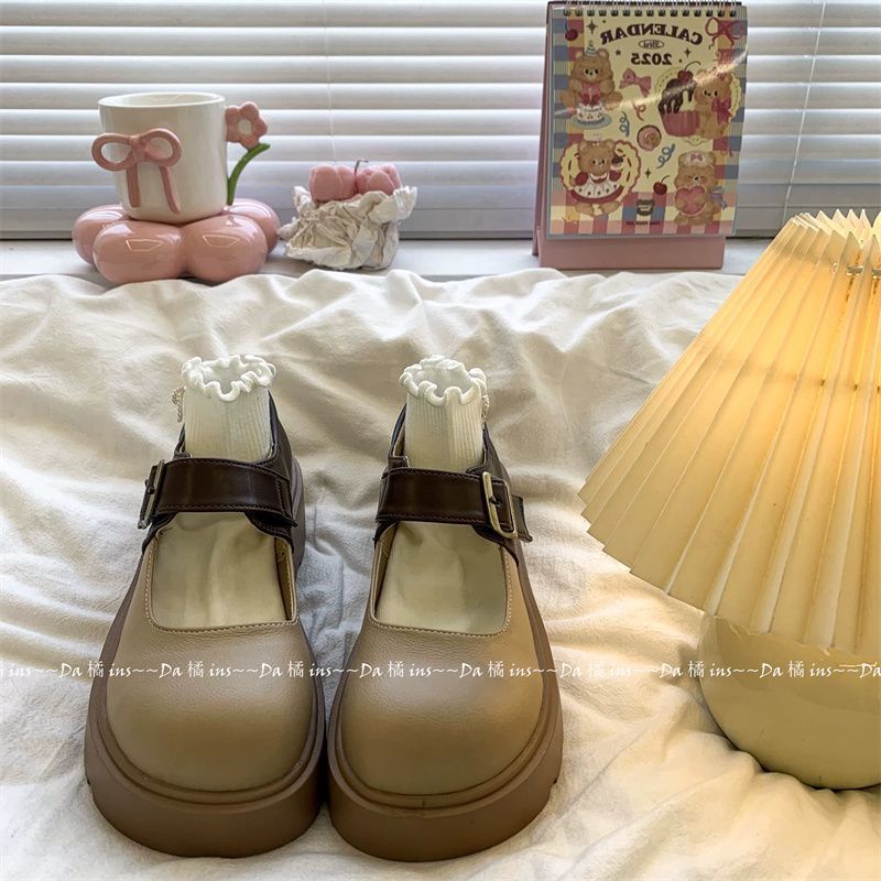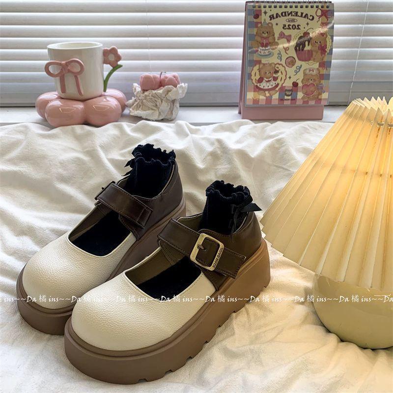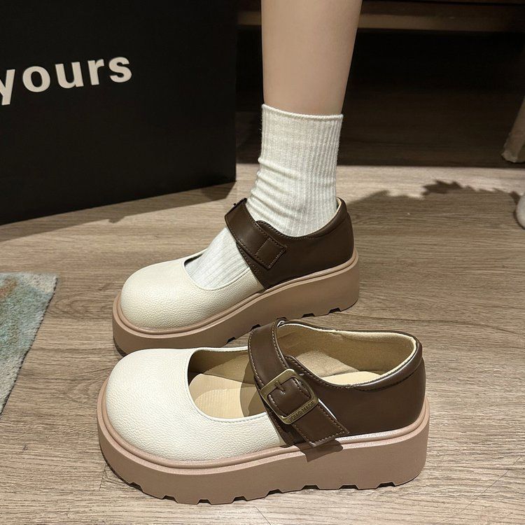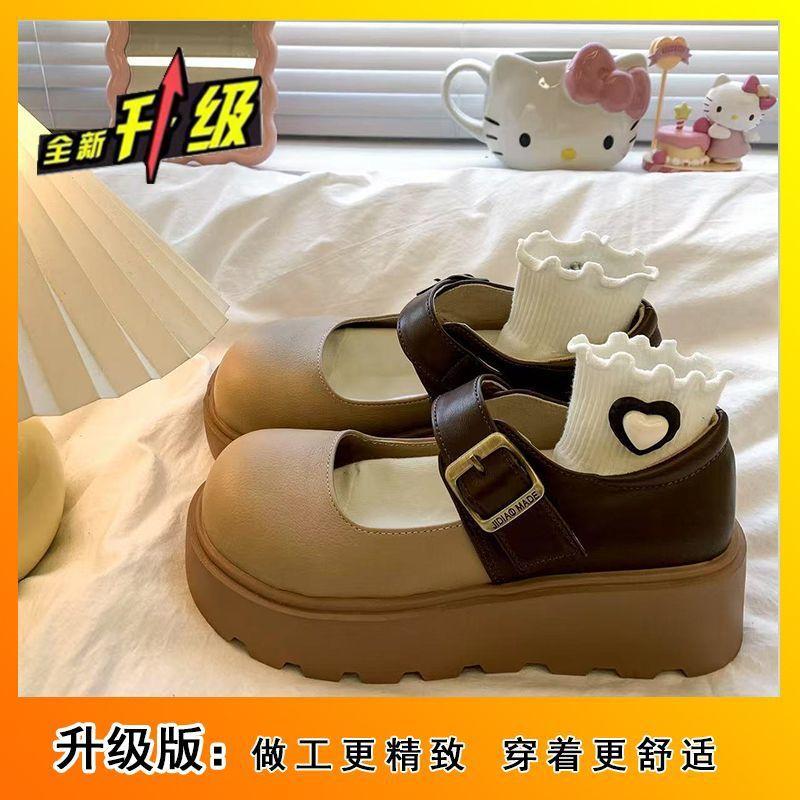 Туфли-лодочки с круглым носком в британском стиле в стиле ретро с коротким носком, однотонные, на платформе, увеличивающие рост, женские кожаные туфли Мэри Джейн, весна 2025, новая мода
