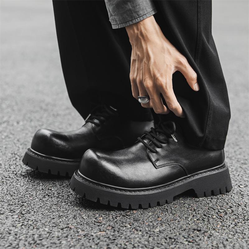 Кожаные туфли мужские осенние новые черные на платформе с инструментами, повседневные туфли-дерби в британском стиле в стиле ретро 2036-J — купить товар онлайн с бесплатной доставкой до всему миру!