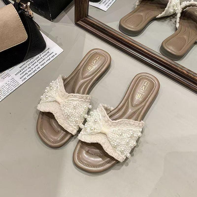 Модные и легкие жемчужные сандалии 2025 лето новинка фея стиль шлепанцы женские для улицы плоская подошва универсальные взрыв — купить товар онлайн с бесплатной доставкой до всему миру!