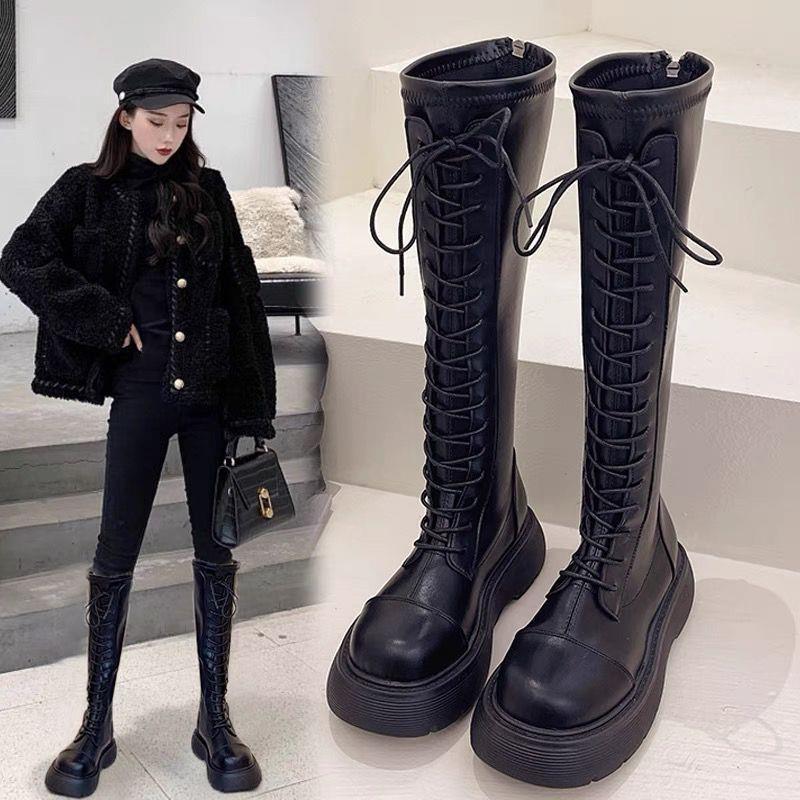Длинные сапоги женские на толстой подошве весна и осень 2025 новые рыцарские сапоги тонкие ботинки Martin, но высокие сапоги до колена британские длинные сапоги