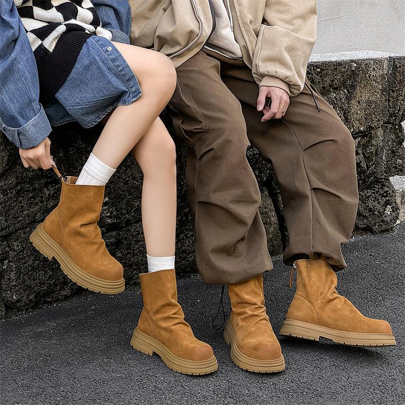 Martin boots 2024 autumn and winter new round head thin boots locomotive boots thick-soled short boots retro 97223-J