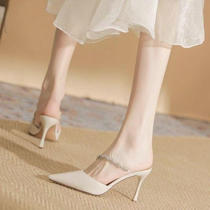 Французские высококлассные туфли-лодочки со стразами, новая верхняя одежда лето 2025, одно слово с остроносыми полушлепками — купить товар онлайн с бесплатной доставкой до всему миру!