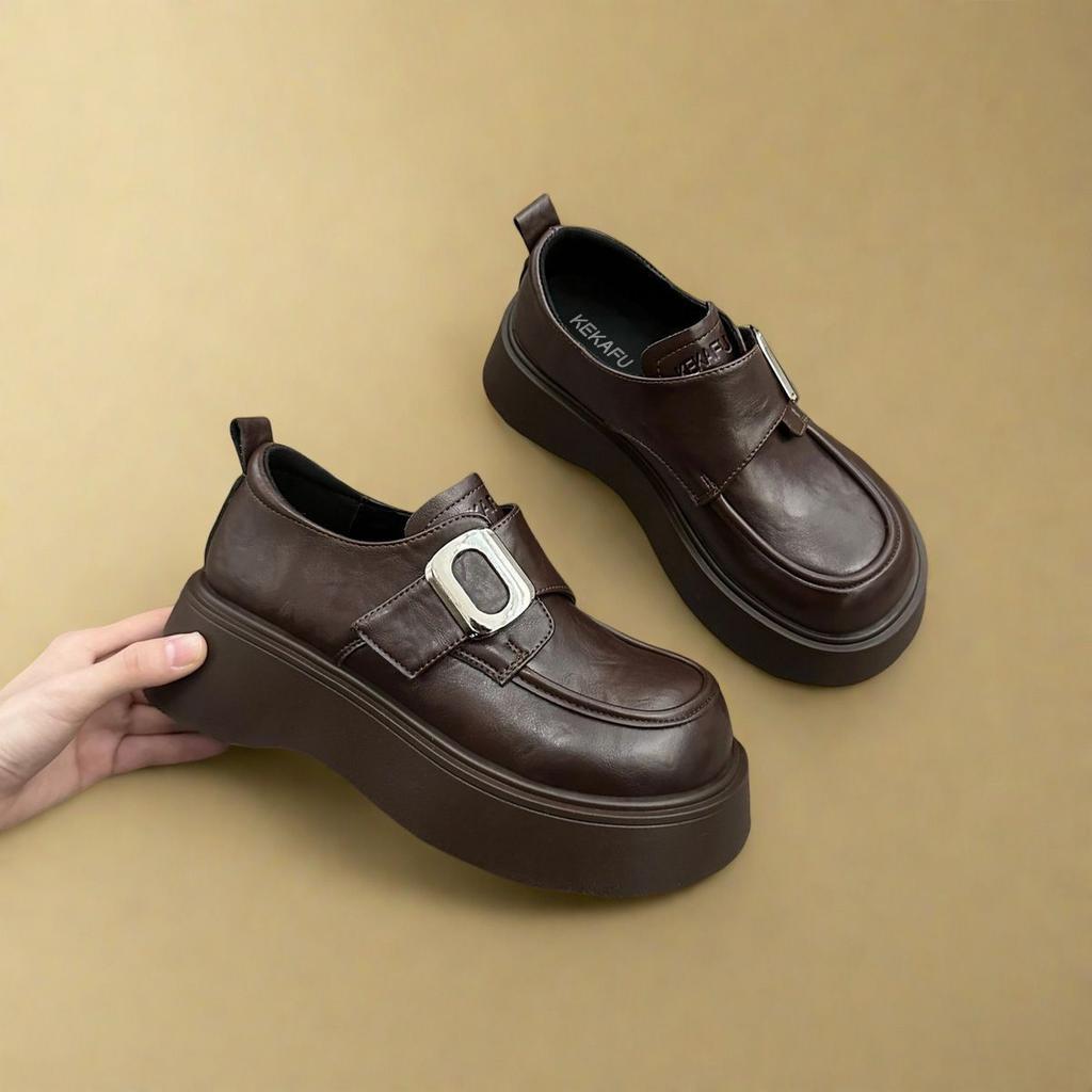 Небольшие мужские туфли увеличивают рост, толстый каблук, черная платформа на липучке jk small кожаные туфли, женские туфли в британском стиле с круглым носком, весна-осень 2025 года, новый модный стиль