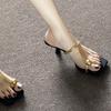 Праздничный стиль тонкий каблук Т-образные жемчужные римские сандалии 2025 лето декоративный закрытый носок квадратный носок шлепанцы женские туфли на высоком каблуке