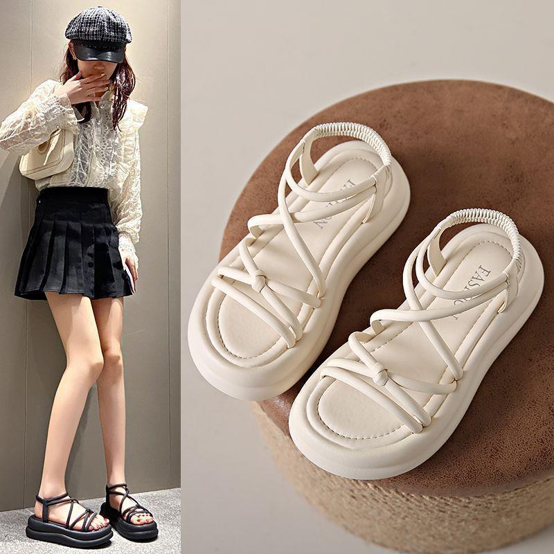 Fairy style versatile casual strap beach shoes Roman shoes comfortable to wear outside stepping on shit soft sole 2025 summer new