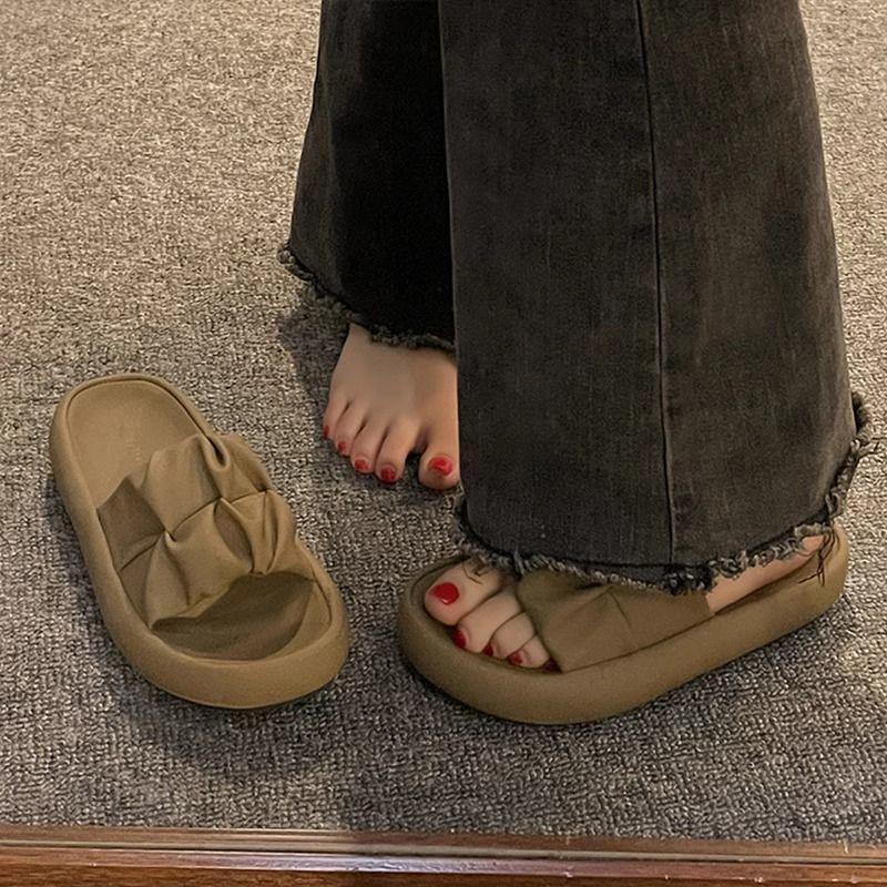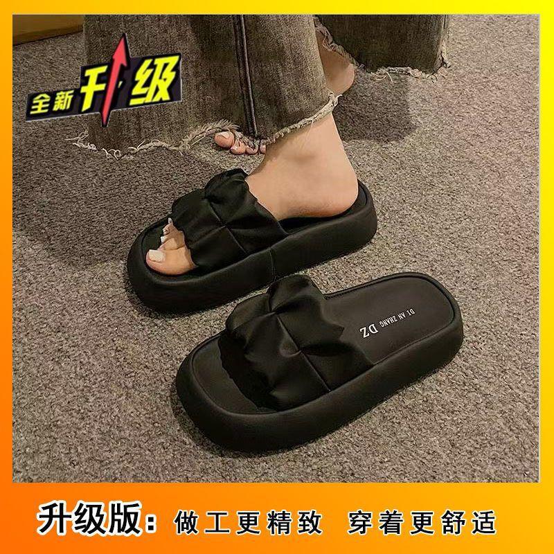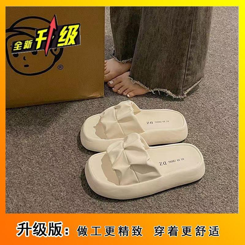 2025 новые французские шлепанцы на платформе, легкие, с толстой подошвой, с открытым носком, на одно слово, мятые, крутые шлепанцы, женская летняя обувь