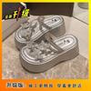 Носите увеличивающие рост универсальные модные сандалии фея две толстые подошвы с круглым носком ленивые повседневные тапочки со стразами лето 2025