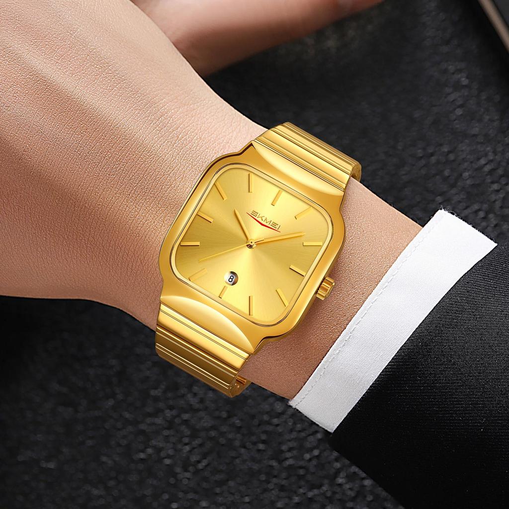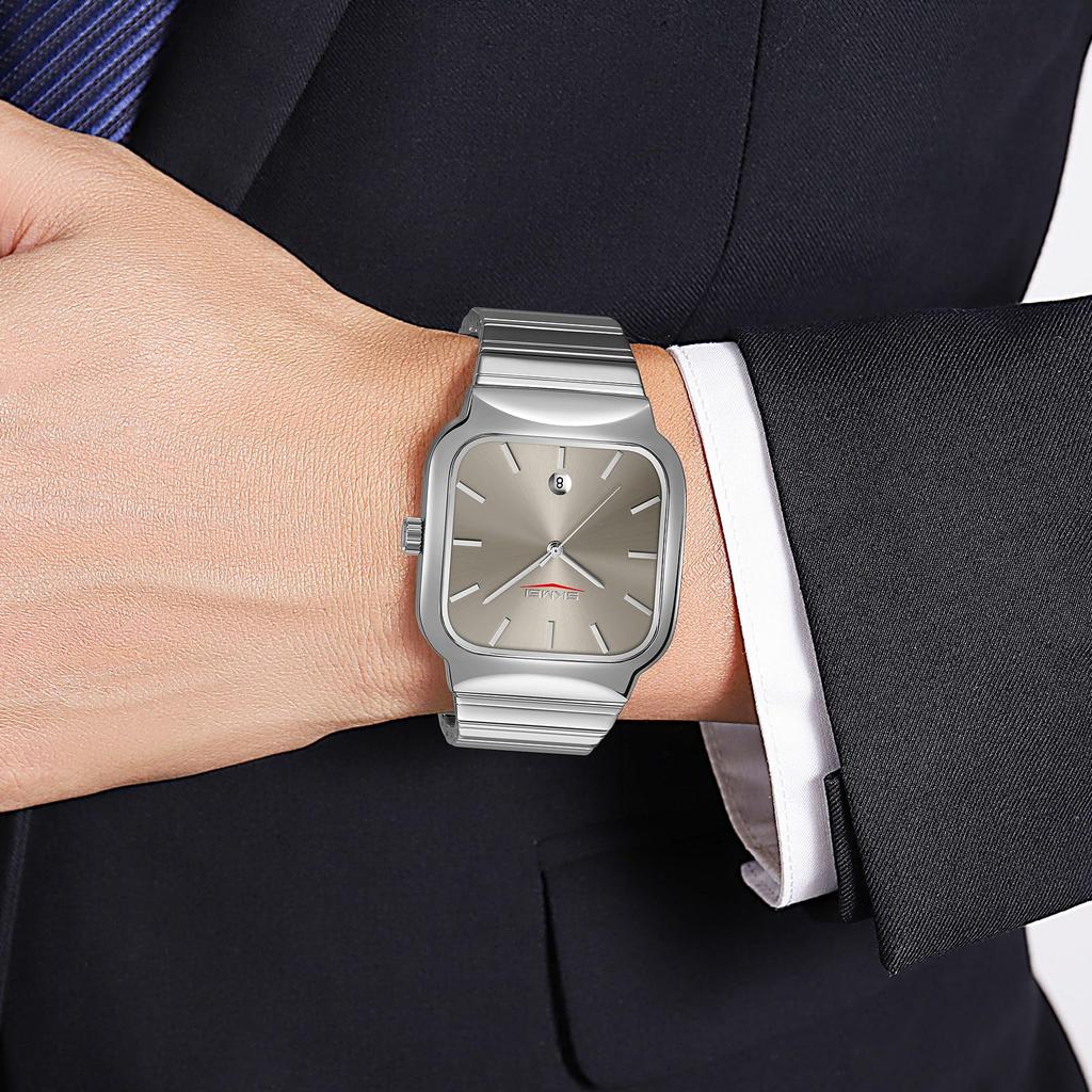 Часы для мужчин Дата Полностью нержавеющая сталь квадратный кварцевые мужские часы мода бизнес повседневный водонепроницаемые наручные часы