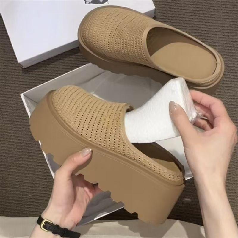 2025 новые летние полые сетчатые тапочки с толстым дном, женские тапочки-мешки, увеличивающие рост