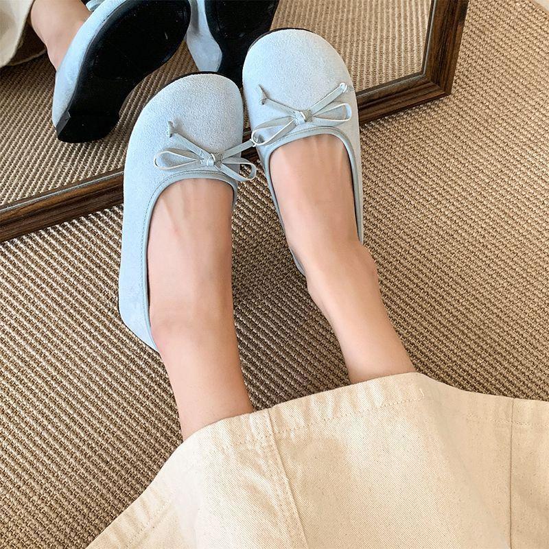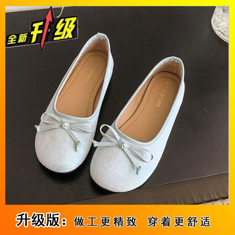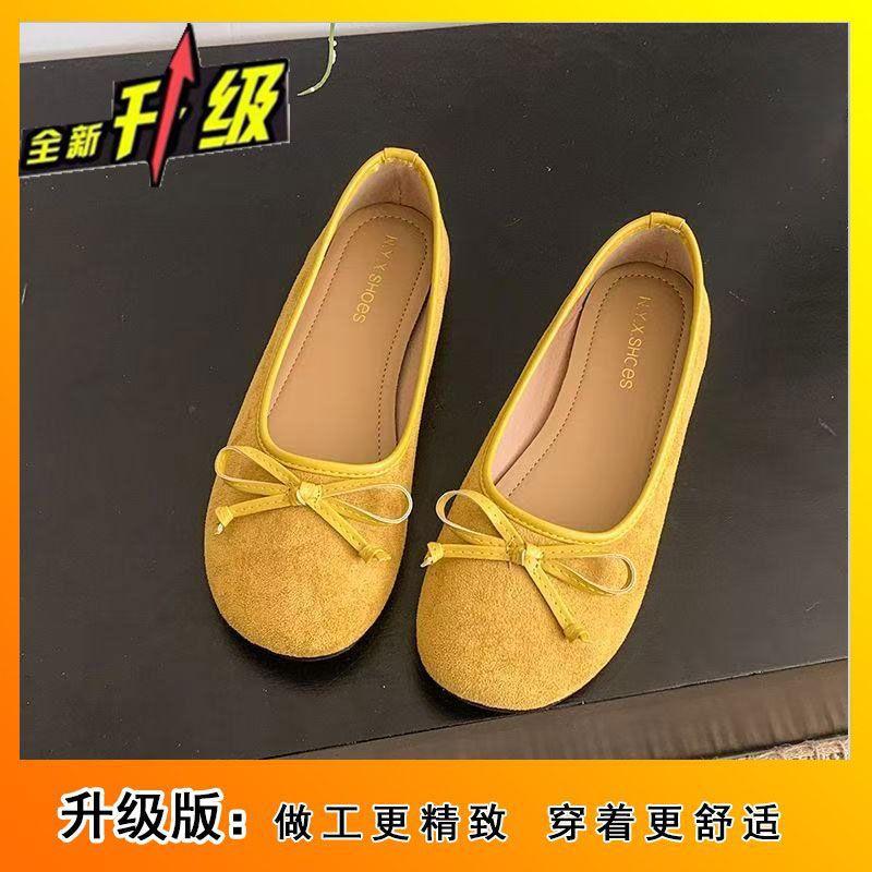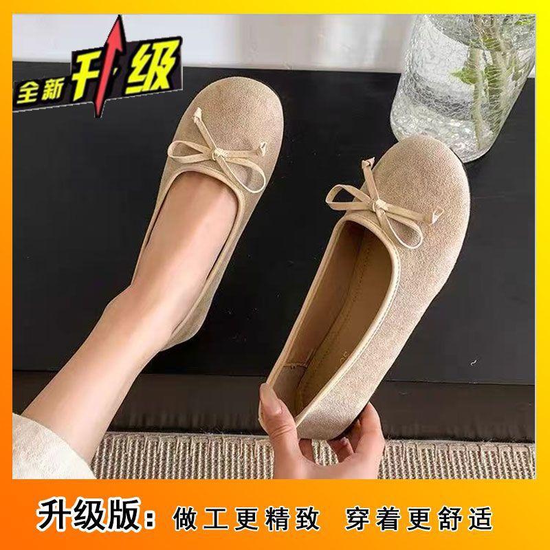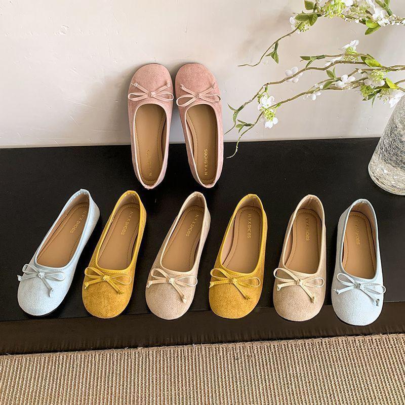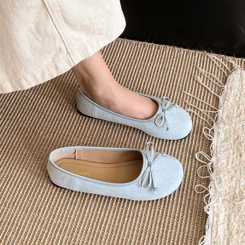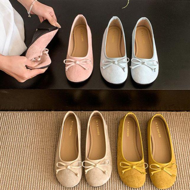 Балетки с неглубоким горлом, женская обувь 2025 года, новые французские туфли с бантом, плоская подошва, мягкая подошва, нежные красные шапочки