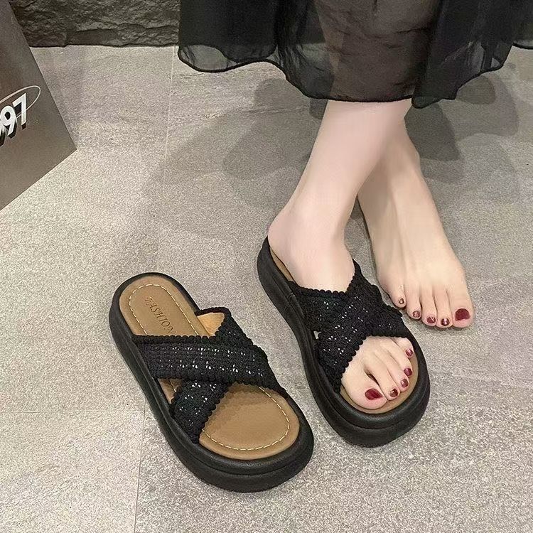 Премиум-чувство, подходящая юбка, нескользящая, дышащая, пляжные, классные, модные, толстая подошва, увеличивающая рост, тапочки, женская обувь, новинка 2025 года