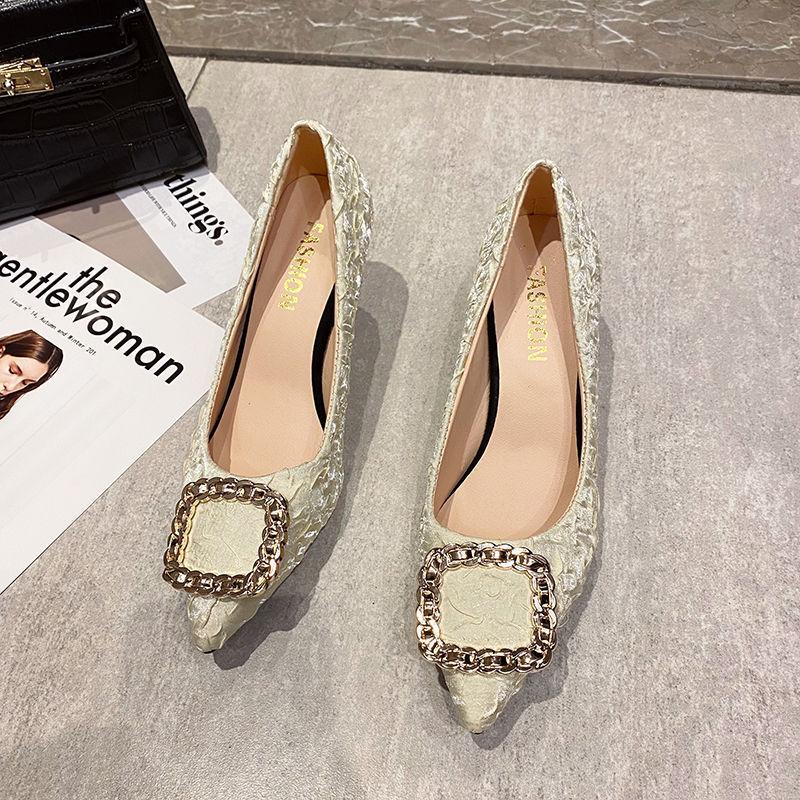 Остроносые женские туфли темпераментные профессиональные женские туфли на высоком каблуке 2025 осень новые популярные в стиле маленького ароматного ветра туфли с квадратной пряжкой из стразов