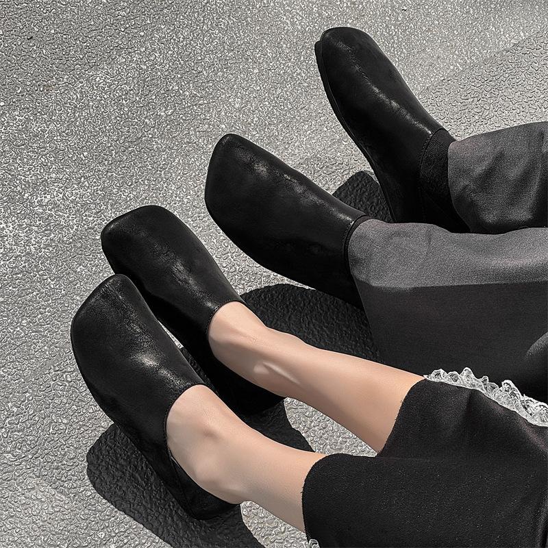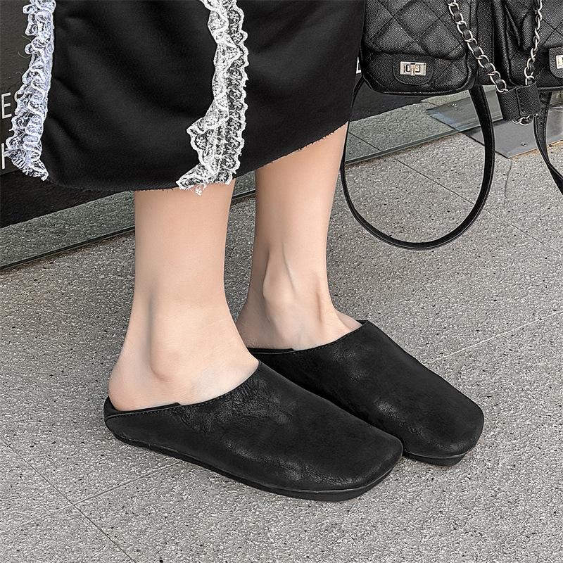 Темные ретро кожаные туфли-лодочки пара больших размеров повседневная обувь одна педаль ленивые туфли 14712-24712-J