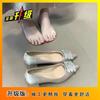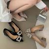 Новые французские туфли-лодочки на высоком толстом каблуке с квадратной пряжкой из стразов, женские 2025, шелковые, с острым носком, с открытым вырезом, свадебные туфли, одинарные туфли