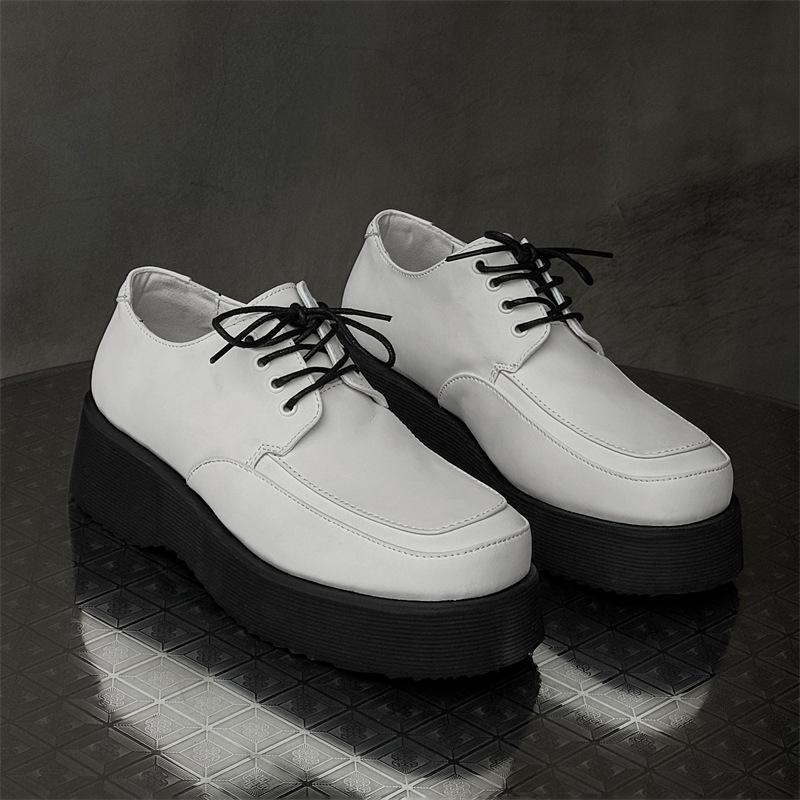 Весенняя мода туфли на платформе с увеличенным голенищем корейская версия универсальные повседневные туфли на среднем каблуке со шнуровкой белые мужские туфли 96590-J — купить товар онлайн с бесплатной доставкой до всему миру!