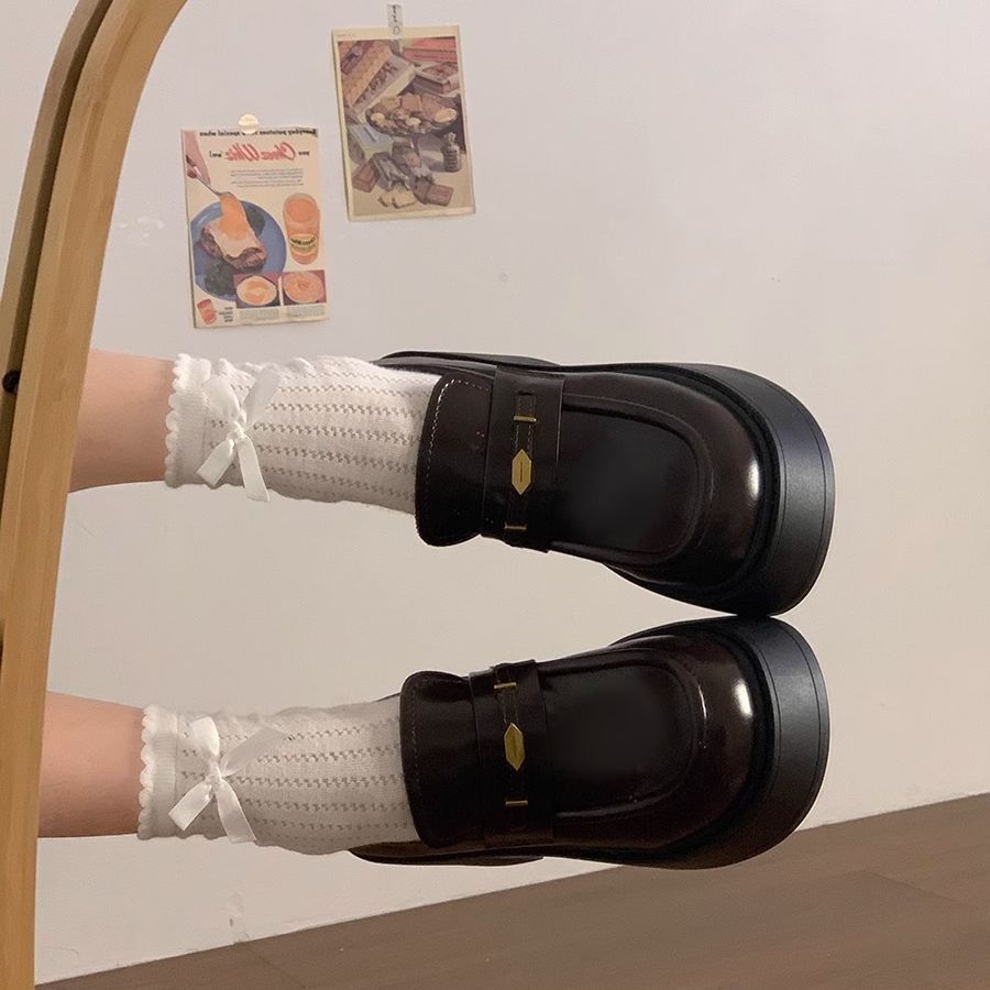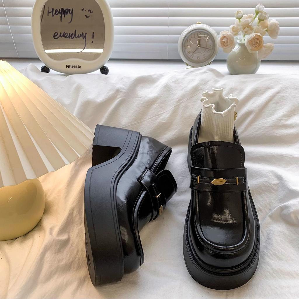 Японские туфли на толстом каблуке, ленивые повседневные, 2025 весна и осень, новая платформа, лоферы в британском стиле на одну ногу и маленькие кожаные туфли