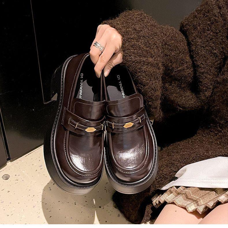 Лоферы в британском стиле на платформе, туфли из маленькой кожи на одной педали, новинка весны и осени 2025 года, японские повседневные туфли на толстом каблуке для ленивых