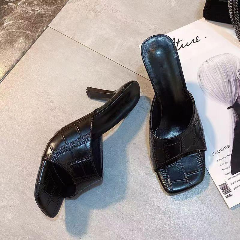 Модная универсальная модель интернет-знаменитости 2025 лето новая квадратный носок рыбий рот высокий каблук тонкий каблук большой размер открытый носок крутые шлепанцы женские