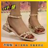 2024 новая женская обувь на низком каблуке 40 сандалии-гладиаторы на толстом каблуке для полных ног женская модная универсальная обувь сандалии с открытым носком и заклепками