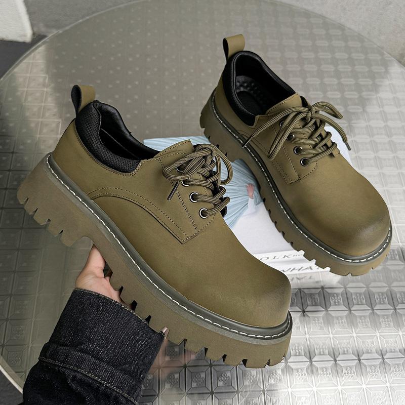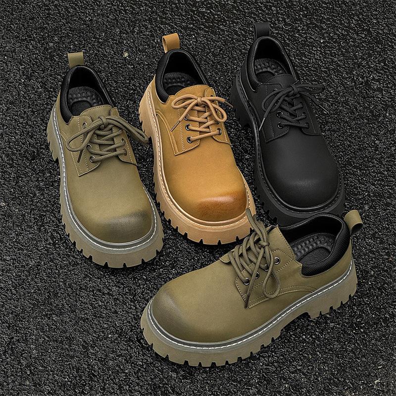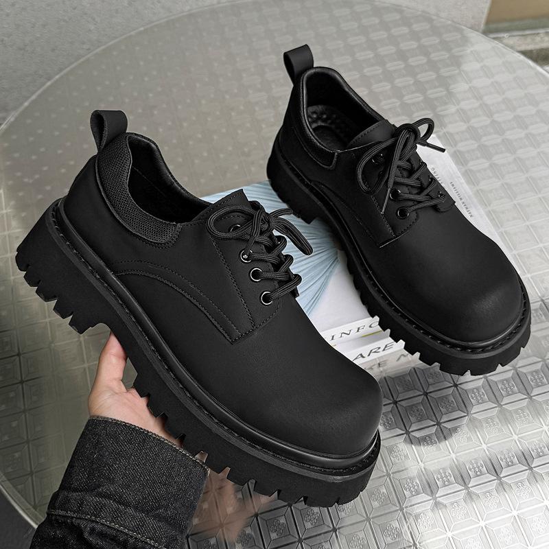 Мужские туфли с низким верхом на толстой подошве из ревеня, осень 2024, новые кожаные туфли с большим носком, модные универсальные туфли дерби 66325-J