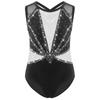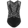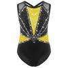 Детский купальник для девочек с перекрещивающимися бретелями на спине, без рукавов, с круглым вырезом, блестящими стразами, металлический танцевальный костюм
