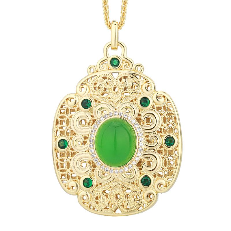 Ювелирные изделия Имитация Цветной Сокровище Золото Ретро Изысканный Придворный Стиль Подвеска Ожерелье Основной 10 * 12