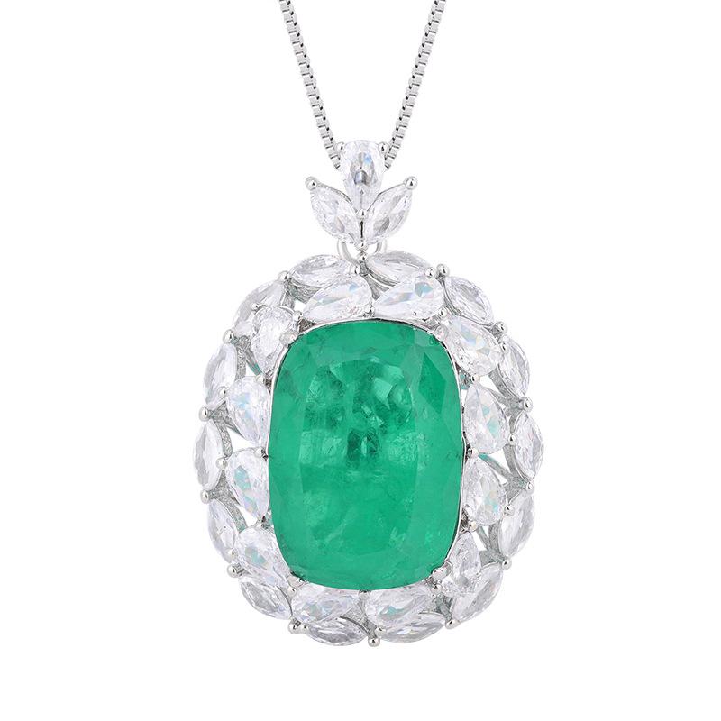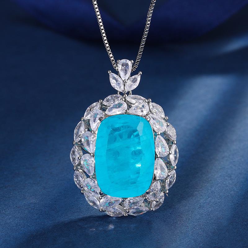 Ювелирные изделия Медное основание Позолоченное Имитация Изумруда Параиба Темперамент Подвеска Толстый Квадратный Главный камень 13 * 18