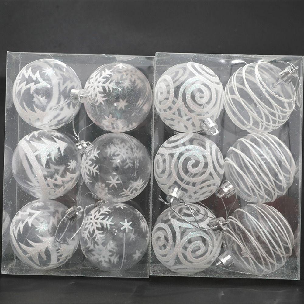 6pcs 6cm Christmas Tree Pendant Creative White Painted Ball Christmas Ball Wedding