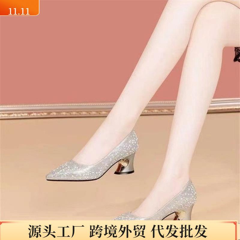 Осень 2025 года новые изделия из жемчуга и ярких бриллиантов прекрасно смотрятся с туфлями-чеонгсам на среднем каблуке для мам, остроносыми туфлями для подружек невесты на свадьбу и банкет