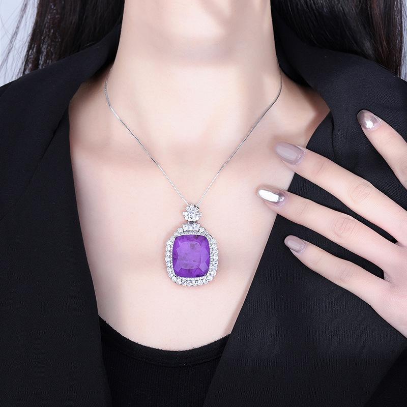 Ювелирные изделия Медное дно Позолоченный имитация Изумруд Фиолетовый квадрат 20 * 23 кулон ожерелье Ювелирные изделия