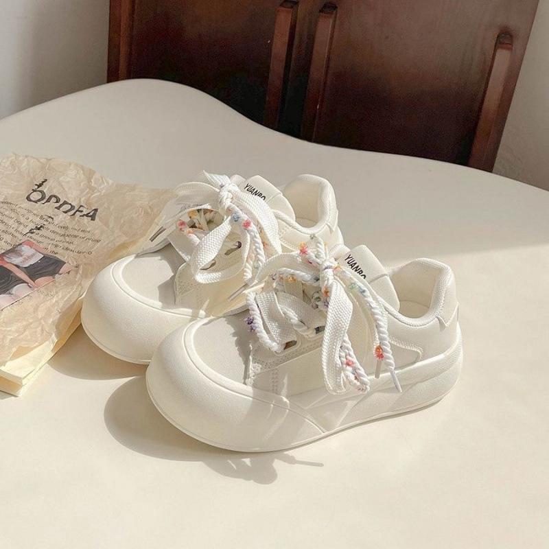 Туфли на платформе, универсальные маленькие белые туфли, толстая подошва, женские 2024, новые, весенне-осенние, туфли-хлебцы, повседневные туфли с большой головой
