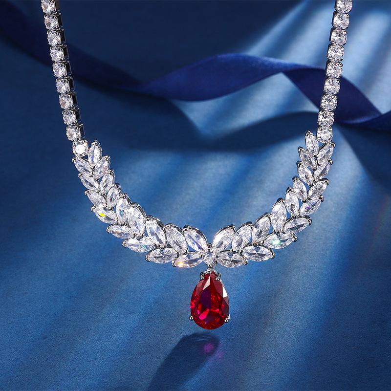 Ювелирные изделия Позолоченная медь Настоящее золото Имитация красного корунда Универсальная цепочка Премиальное банкетное колье Женское 10 * 16