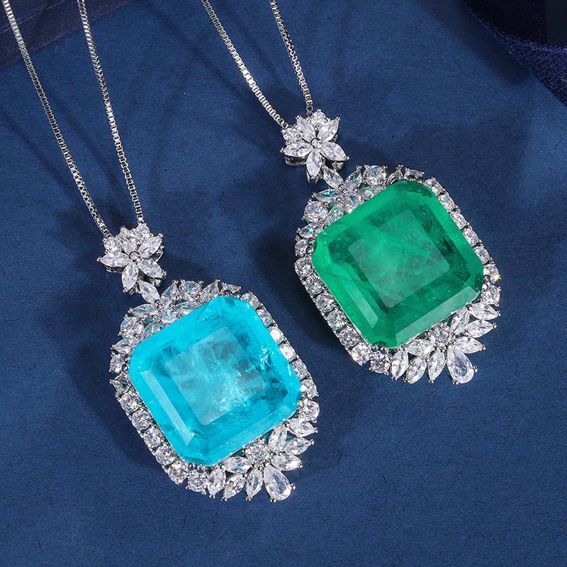 Ювелирные изделия Медное основание Позолоченное Имитация Изумруда Параиба 18 * 18 Темперамент Роскошное Подвесное Ожерелье