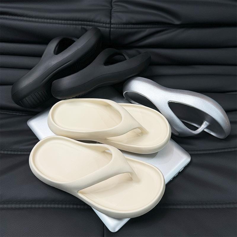 Серебристые шлепанцы на толстой подошве, модная женская летняя обувь, нескользящая подошва, повседневные универсальные, интернет-знаменитость, пляжные крутые шлепанцы