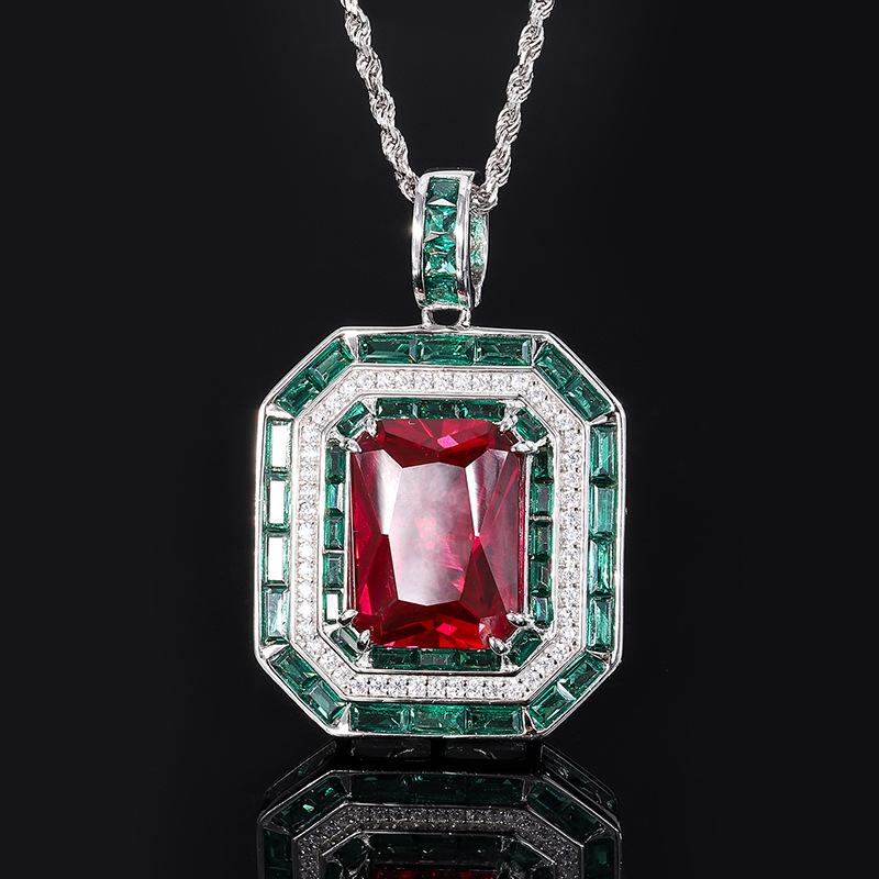 Ювелирные изделия Медное основание Позолоченное Европейская имитация Изумруд Красный корунд Роскошная инкрустация Квадрат 12 * 16 Подвеска Ожерелье Женское