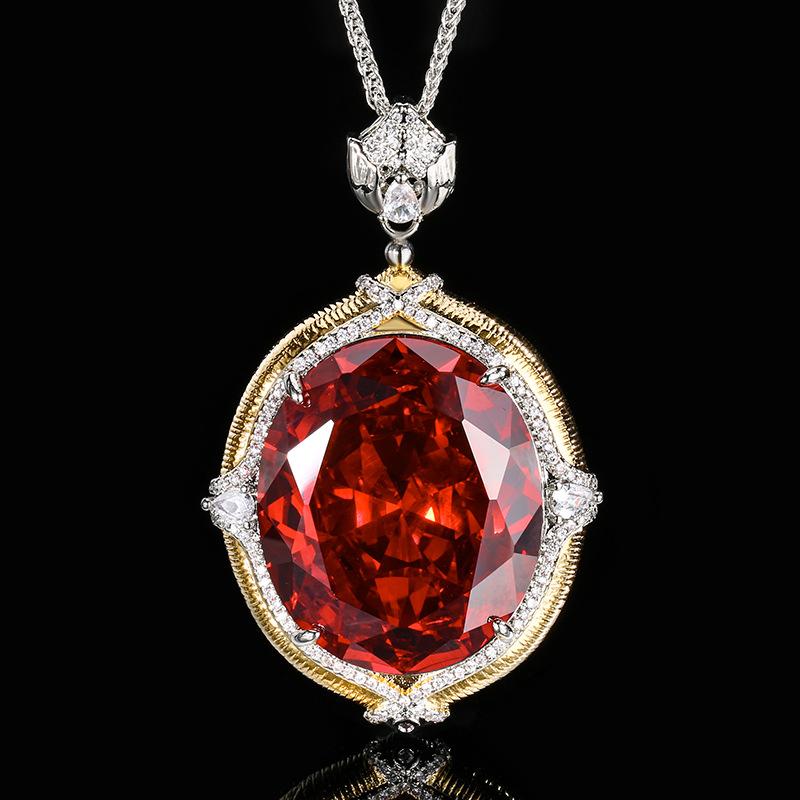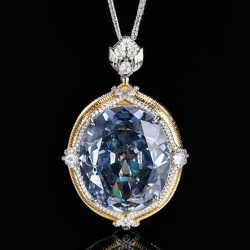 Ювелирное украшение Имитация Цветного Сокровища Большой Яйцевидный Ретро Брашированный Кулон Ожерелье Камень 25 * 30