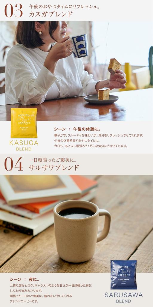 [Сравните 4 вида кофе] Это набор, который позволяет вам наслаждаться разными вкусами в зависимости от повода для чаепития.. Мы предлагаем вкусы, подходящие к случаю употребления напитка, например, чашка для пробуждения утром или расслабления вечером, чтобы вы могли наслаждаться кофе в течение всего дня.