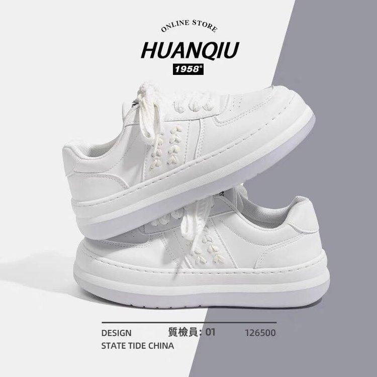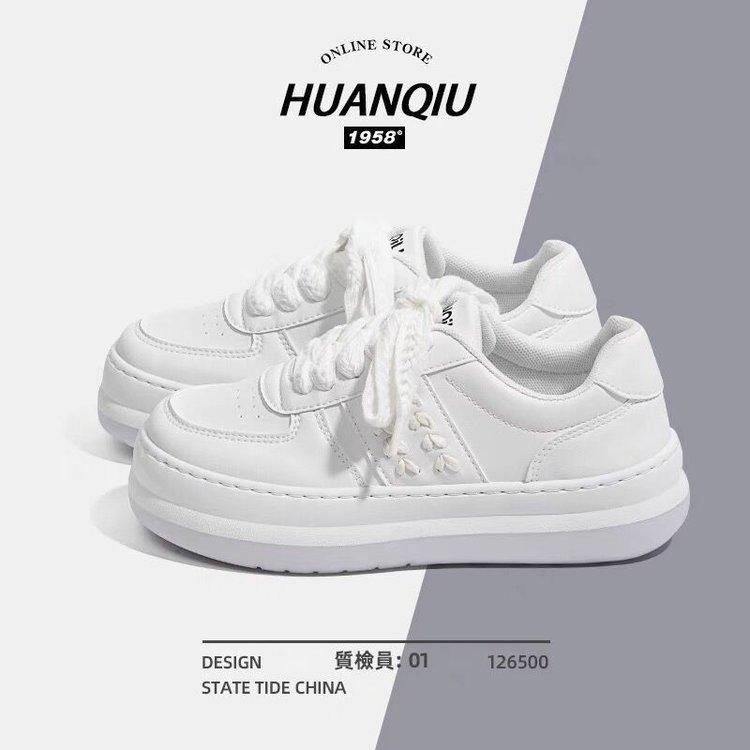 Женские кроссовки 2025 осень новые резиновая мягкая подошва маффин увеличение высоты обувь для хлеба однотонные повседневные белые туфли