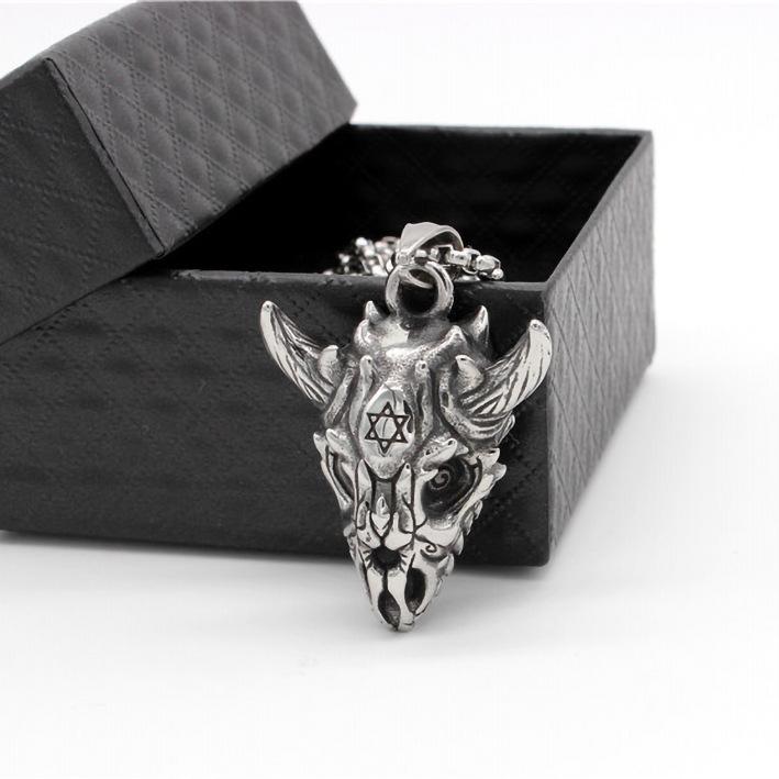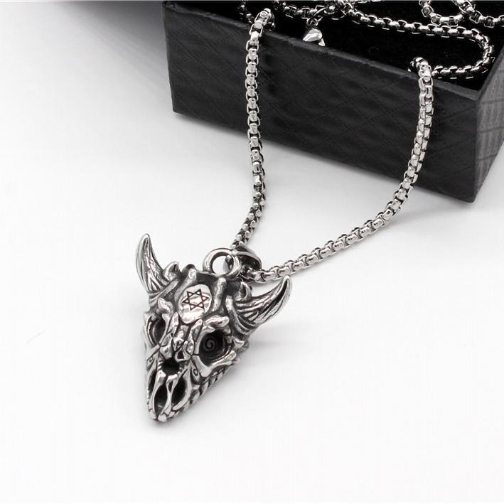 Гексаграмма Голова Быка Кран Титановая Сталь Подвеска Модный Мужской и Женский Ретро Темный Череп Ожерелье Цепочка для Свитера