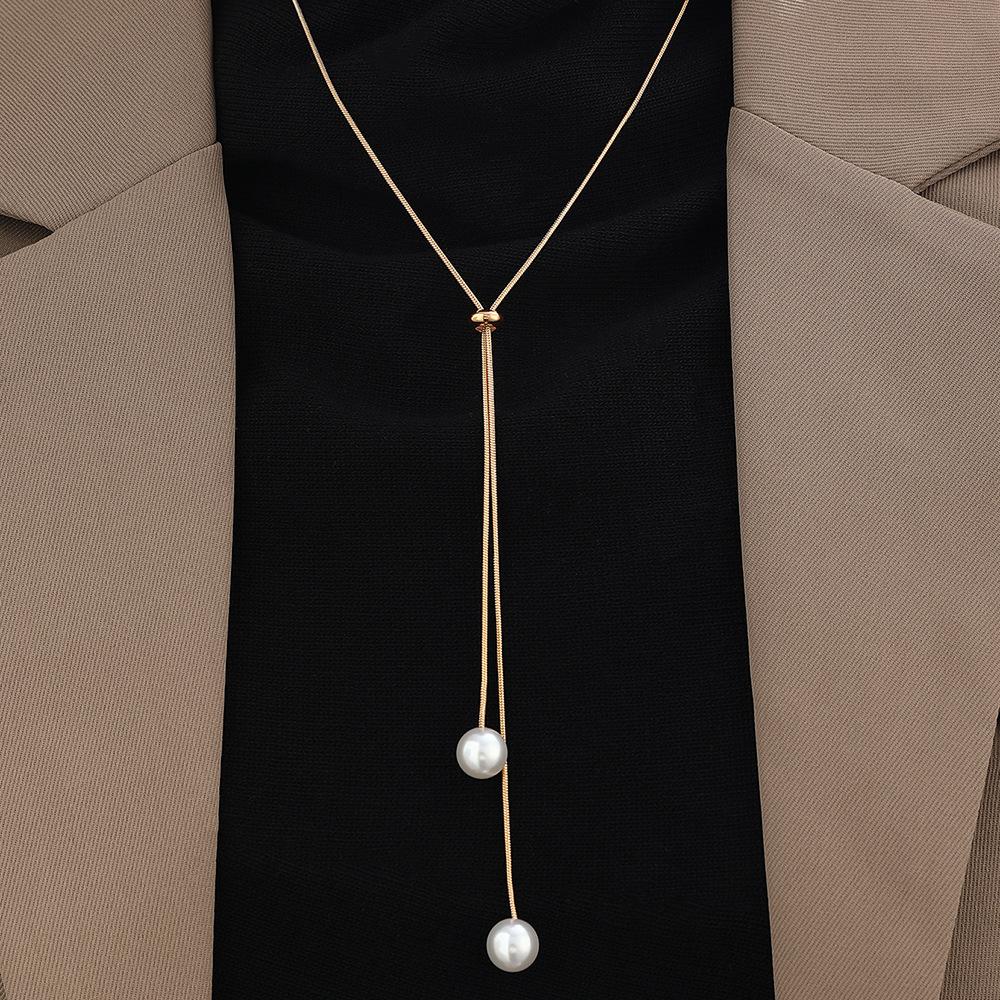 Регулируемое жемчужное ожерелье с длинной подвеской, Дизайн высокого класса, Простая цепочка до ключицы, 1 цепочка для шеи.
