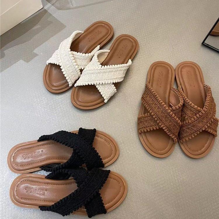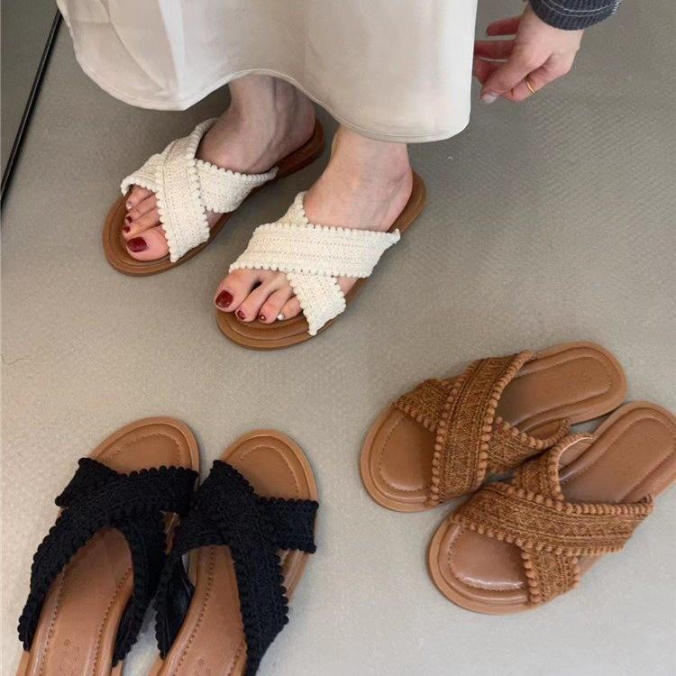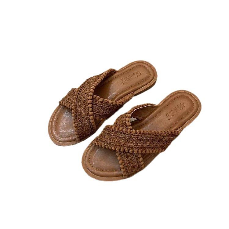 Этнические классные тапочки 2024 года, новые летние винтажные плетеные крестообразные бохо-студенческие плоские римские туфли